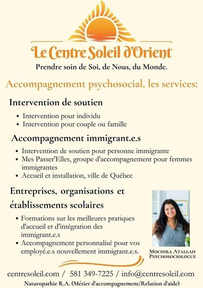 - Rabais: 20% de rabais sur les rencontres d'intervention de soutien pour personne immigrante.