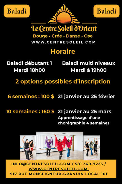 6 semaines à partir de la semaine du 21 janvier au 25 février pour 100$ (accommodement Ramadan)